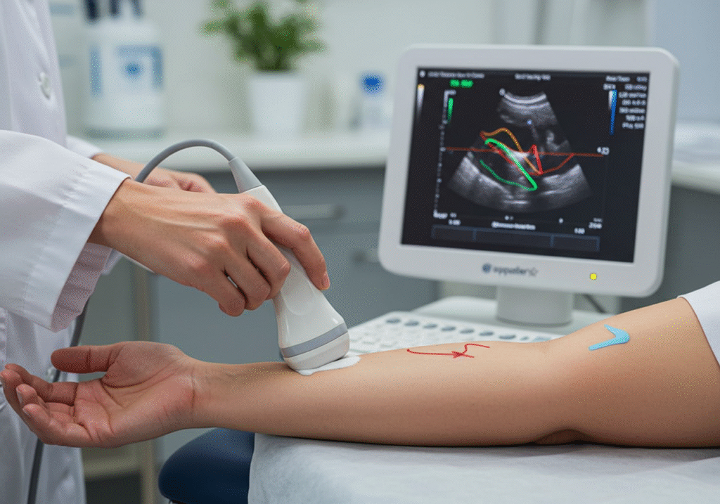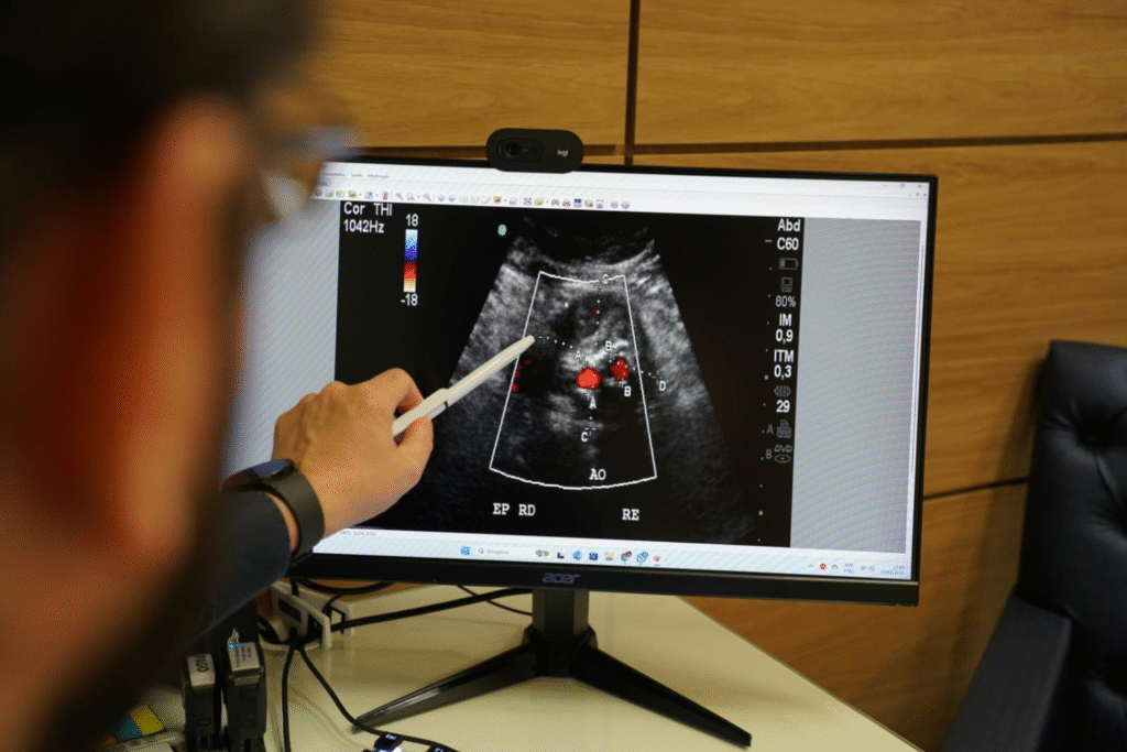 Exame que combina ultrassom convencional com o Collor Doppler para avaliar simultaneamente a estrutura e o fluxo sanguíneo das artérias e veias, auxiliando no diagnóstico preciso de doenças vasculares, assim como pode ser utilizado para orientação dos procedimentos intraoperatórios.