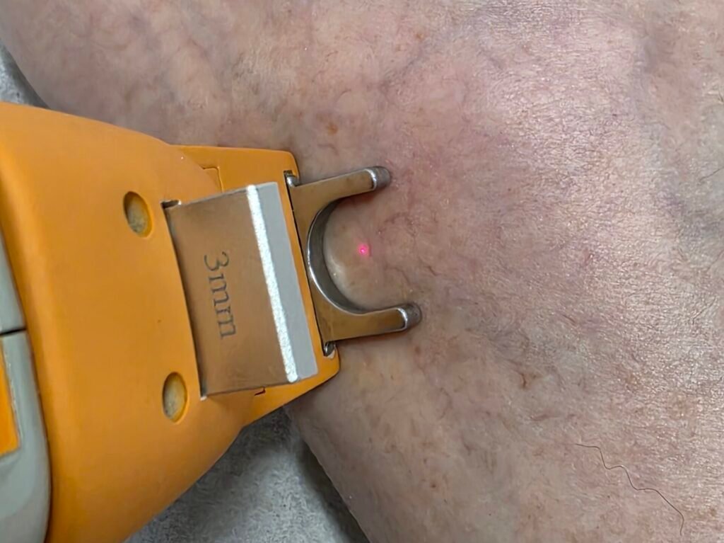 Tratamento minimamente invasivo que consiste na aplicação de laser de alta potência 1064 nm para tratamento das telangiectasias e pequenas varizes.